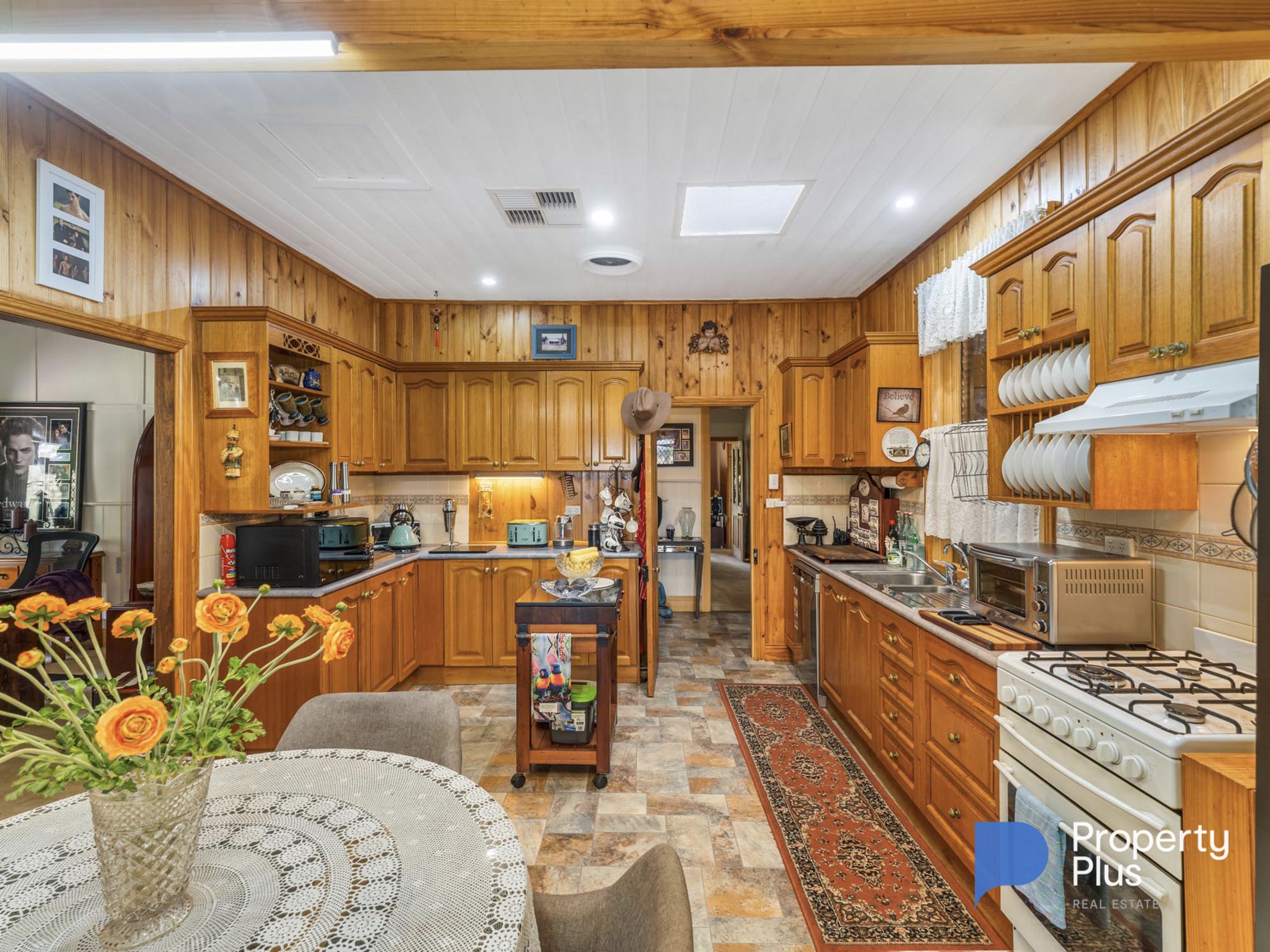 Outside, enjoy a triple carport, extensive maintained gardens with self-watering systems, a part return verandah, extensive patio paving, landscaping around the house and sheds, plenty of parking space, rainwater tanks and animal yards.