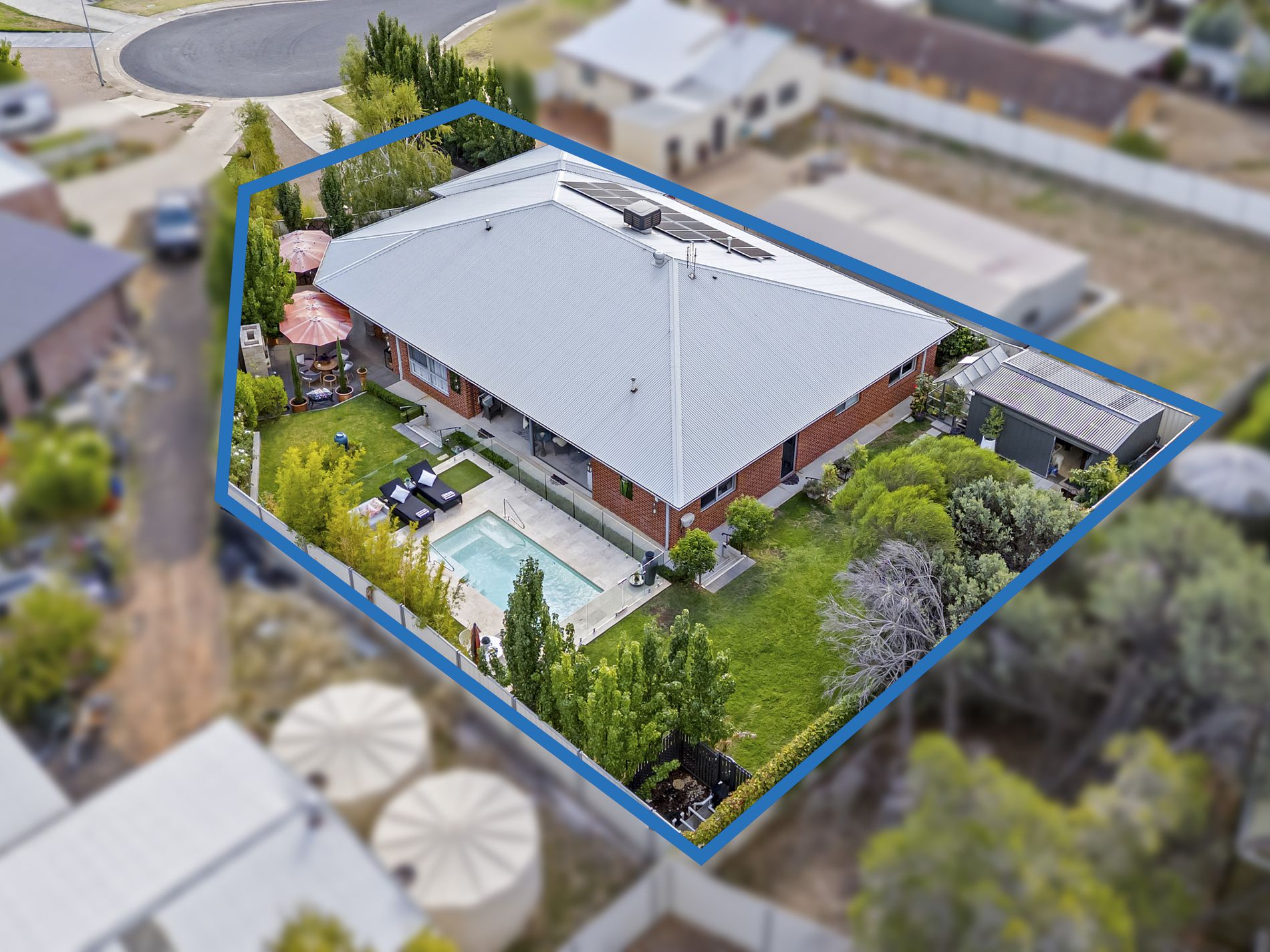 Car accommodation is more than adequately catered to with extra-large double garage with remote door. There’s also loads an open car space at the front of the home and even space for caravan storage. And for the keen gardeners, we have a fabulous hot house is situ, and there’s also a most useful 5’ x 3’ workshop shed with concrete floor, power and a wide opening sliding door. There’s a gardener’s sink connected at the rear of the shed where you will also find raised veggie garden beds. The inground pool is all automatic with heat pump heating. The 6.6kW solar system on the property is an absolute bonus, ensuring minimal energy bills. And with ducted heating and cooling ensuring year-round comfort, you will never want to leave this oasis.