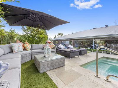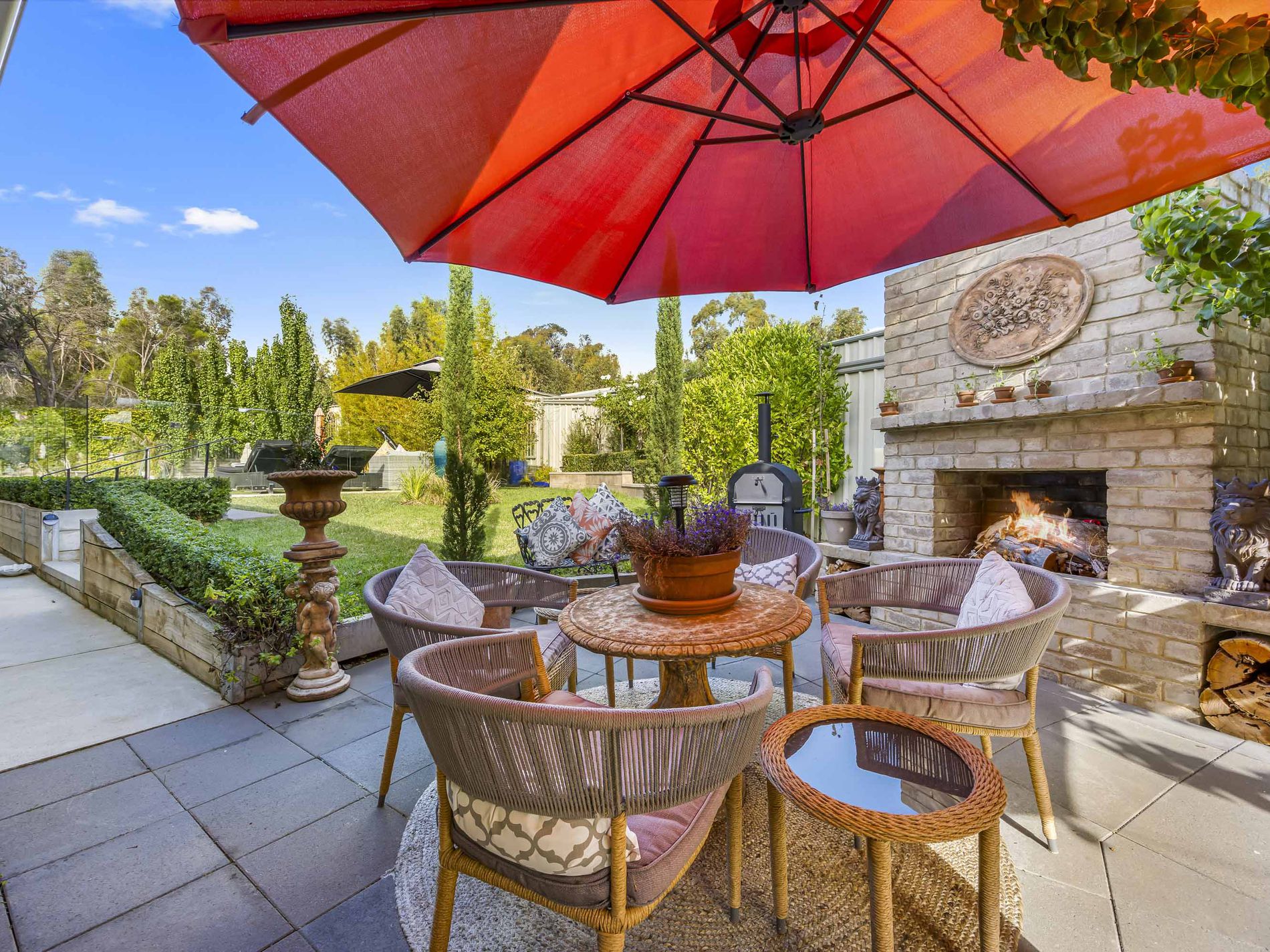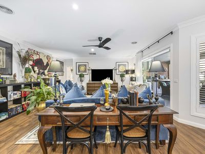 The beating heart of this home is anchored by the central open plan kitchen, living and dining area, showcasing the superb kitchen with an abundance of bench space, stainless steel appliances and a generous walk-in pantry. This central living zone is truly an entertainers’ dream, offering direct access to the substantial undercover outdoor living area featuring town gas connection for your BBQ. This area is adjacent and overlooks the fully compliant heated inground pool. Just fabulous. But that’s not all, there’s more, with a further superbly designed alfresco entertaining area with a uniquely constructed open fireplace, set amongst wonderfully established and landscaped gardens. This is resort style living to a tee.