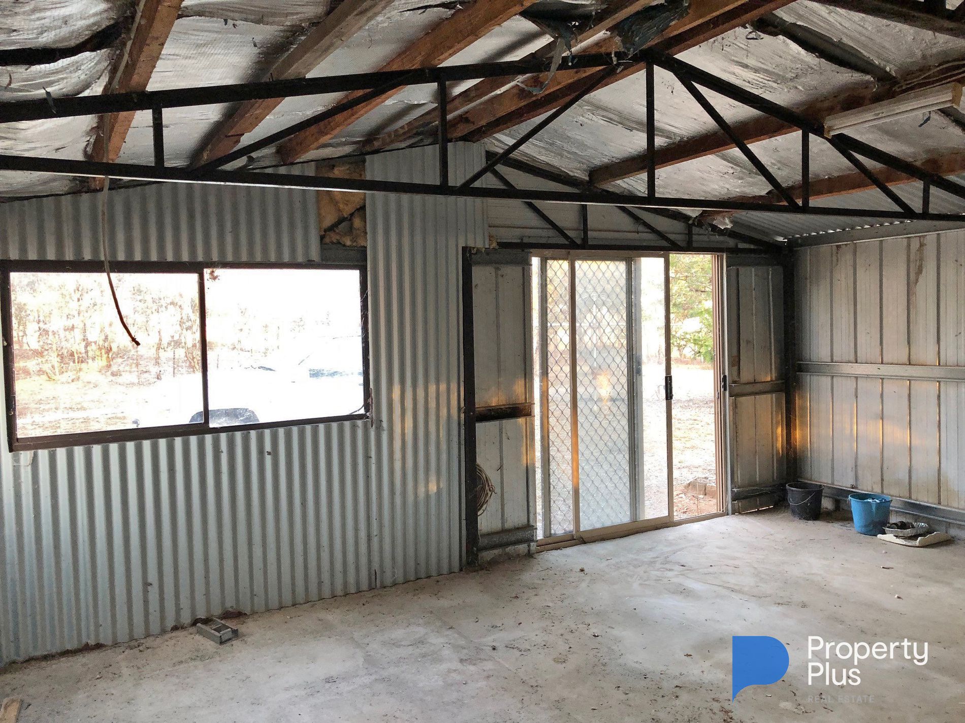 The shed includes an inbuilt model wood heater, old gas stove, gas hot water service, cast iron wood stove, 5KVA generator and shower alcove, all to be installed. There is a fire pit, solar panel and a buried concrete tank that’s been adapted as a fire bunker or storage cellar.