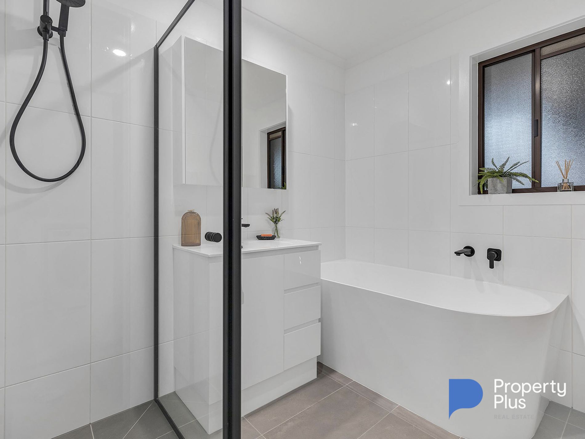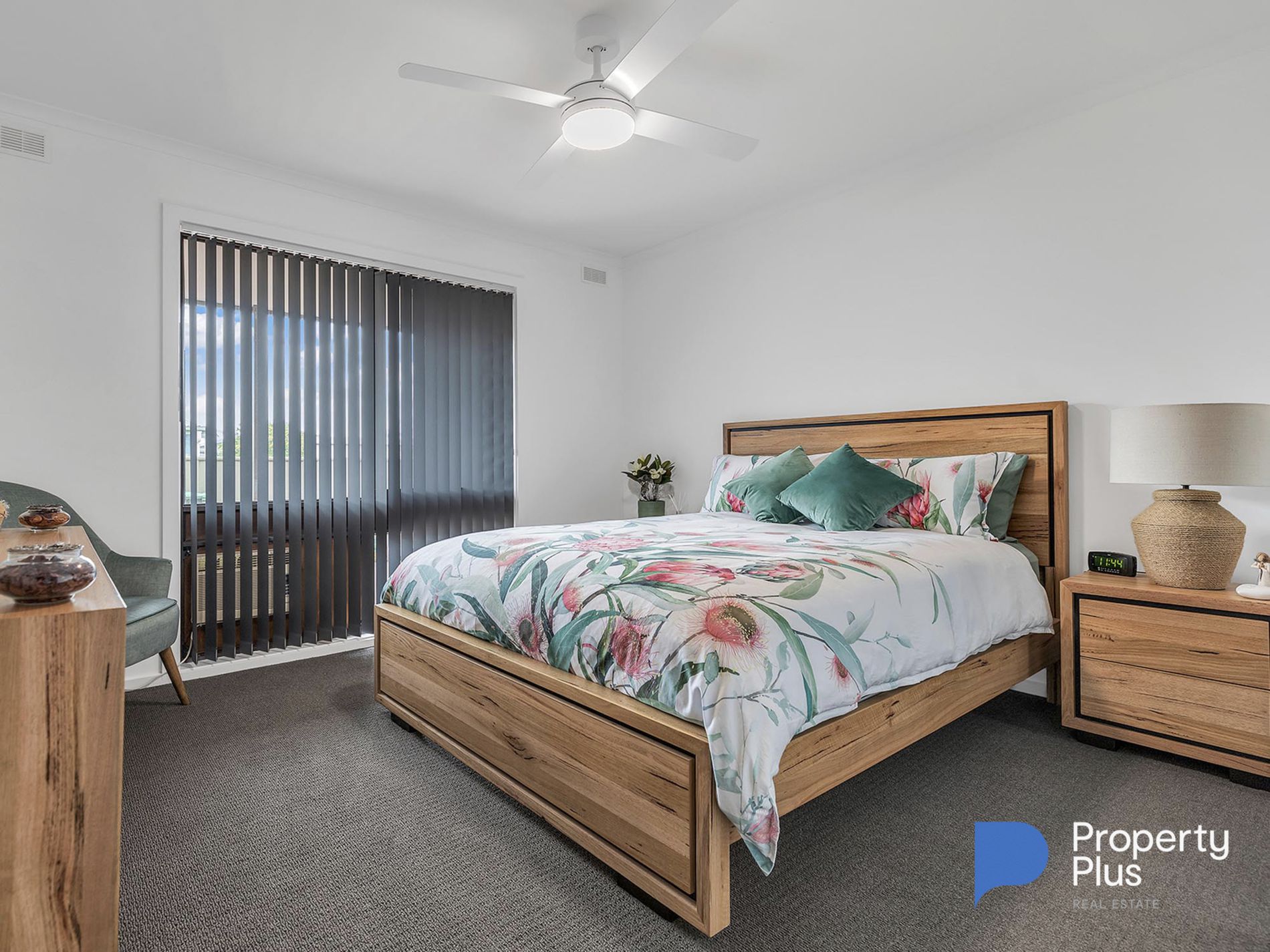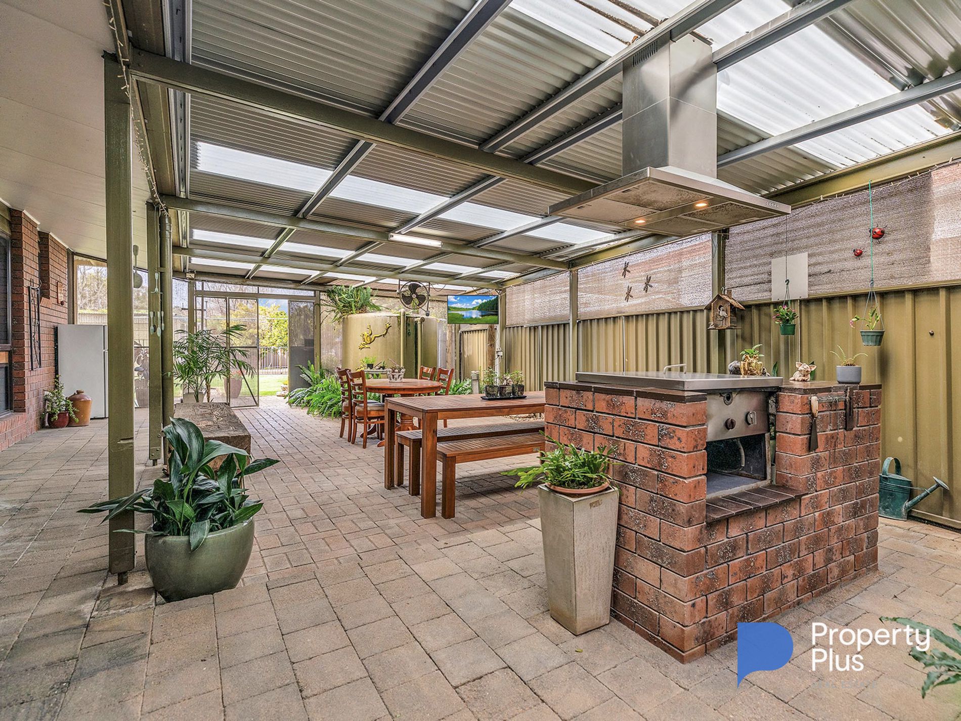 The main lounge boasts a ceiling fan, vertical blinds and a split system for comfort year-round. The beautiful modern kitchen offers plenty of bench space, huge pantry and ample storage, equipped with a gas cooktop, electric oven, dishwasher, breakfast bar and corner pantry overlooking a spacious dining area with sliding doors leading to an inviting outdoor entertaining space. There is also a second formal lounge, a gas log heater and a ceiling fan creating a warm atmosphere for cosy gatherings in the cooler months.