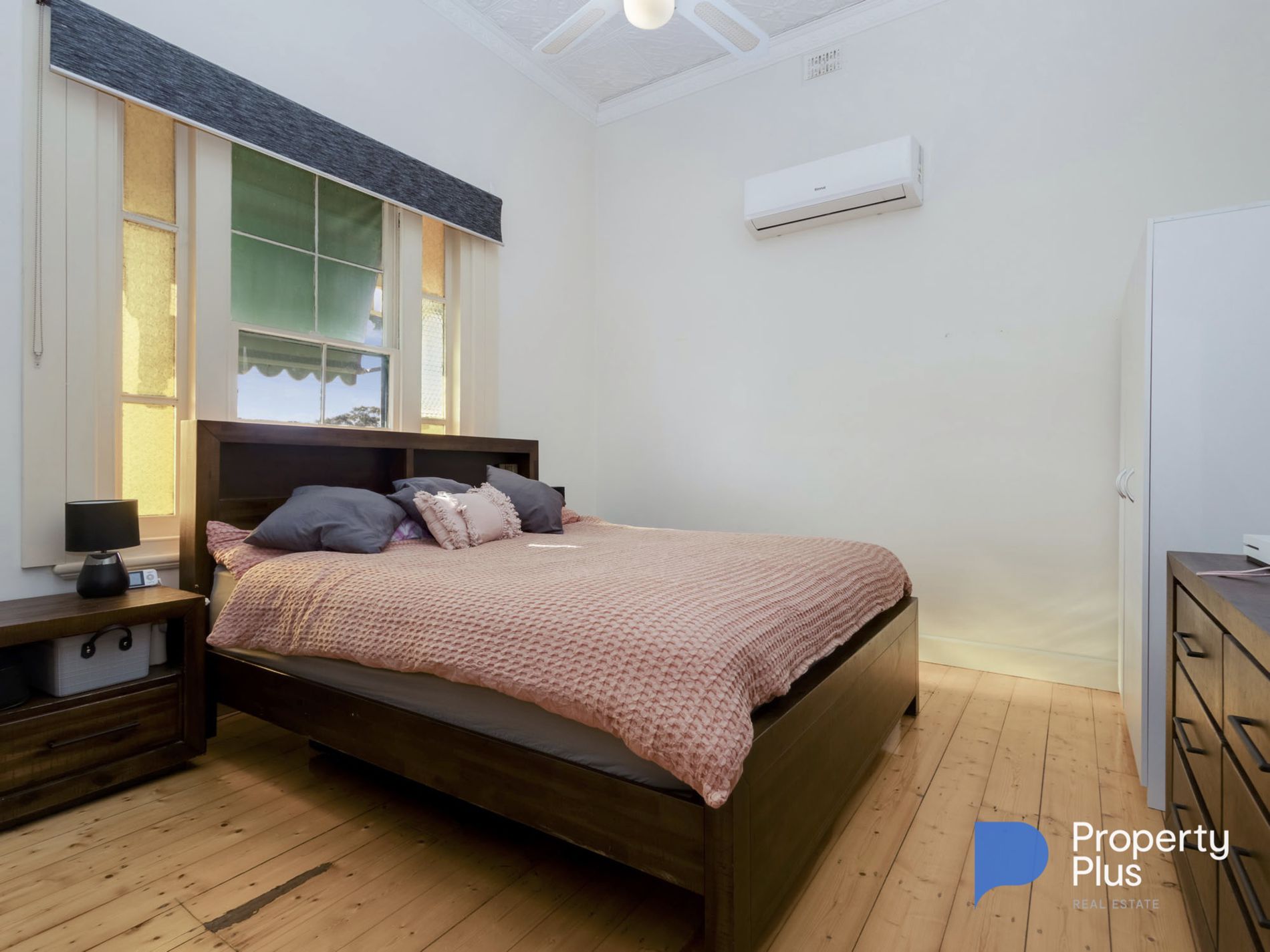 The Edwardian era home has been updated and meets current modern expectations whilst retaining many original features including the Baltic pine floorboards throughout, exceptional leadlight windows that frame the front entry and decorative pressed metal ceilings. The galley style kitchen offers excellent storage with a large pantry, gas/electric cooking and a dishwasher.