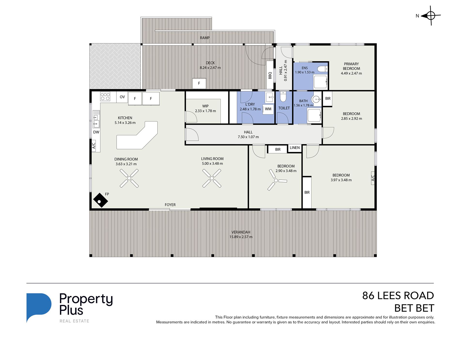 The home comprises three bedrooms with built-in robes, the master featuring ceiling fans and an air conditioner. An enclosed sunroom provides the option of a fourth bedroom or additional living space. The open plan kitchen includes a large walk-in pantry, gas/electric stove, rangehood, large bench top work area, timber cupboards and slate flooring. The lounge is equipped with a large split system wall air conditioner, freestanding wood heater and three ceiling fans. Gas hot water service in place.