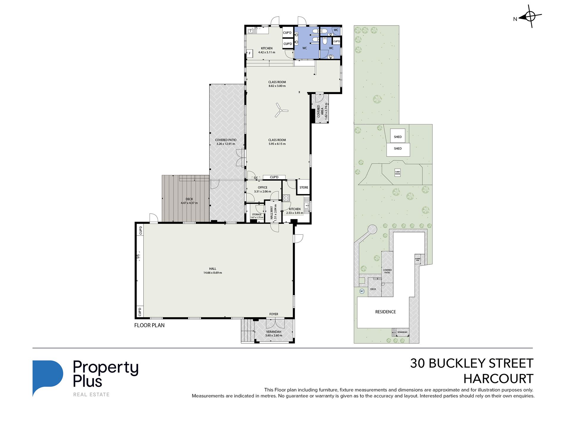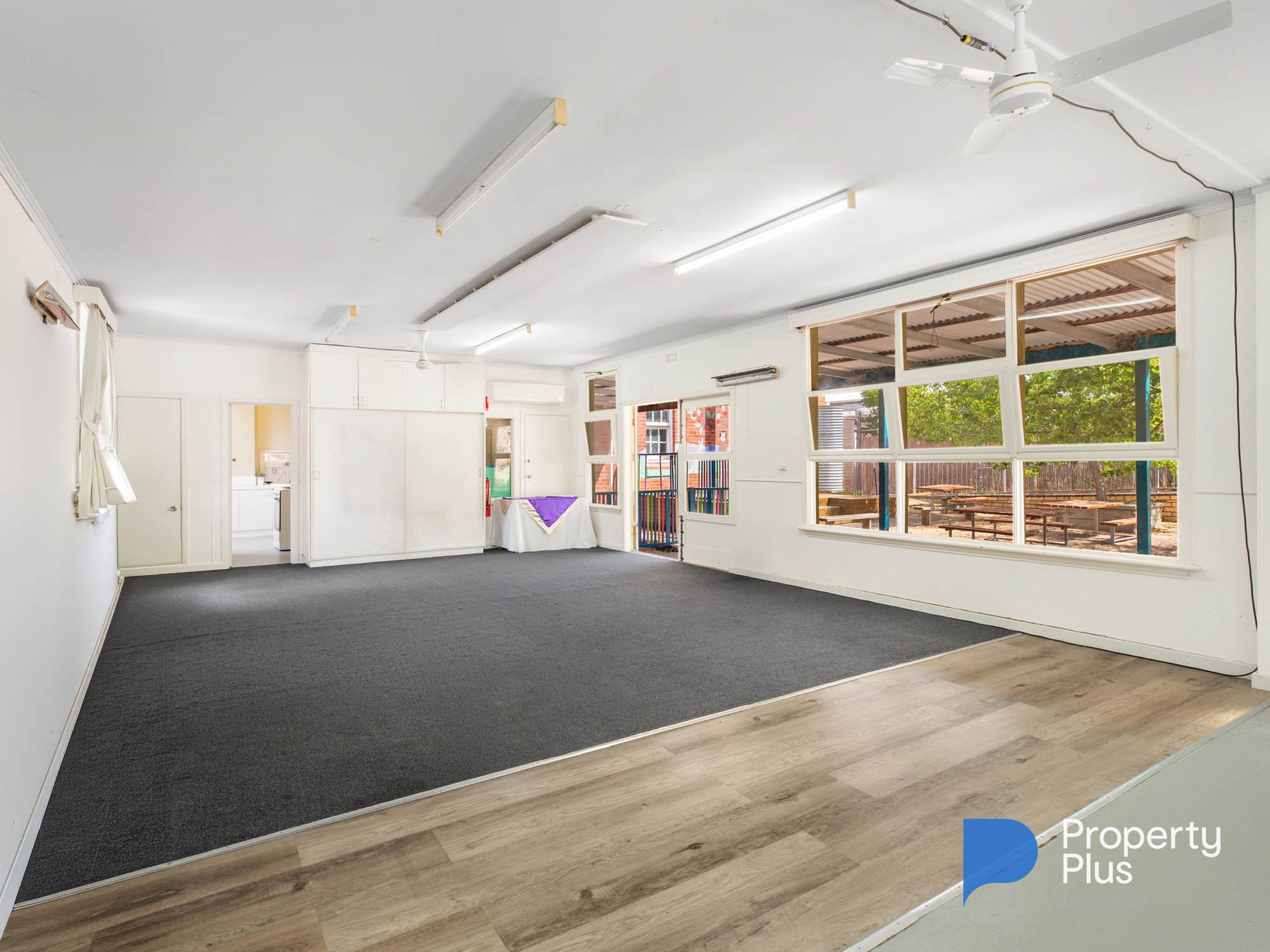 A sympathetic extension was added in 1952, later connecting in 1983 to what has most recently operated as the Harcourt Pre-School. The two buildings are seamlessly linked via a kitchenette and storeroom/office, creating a flexible and functional layout. The former pre-school features an open-plan space complete with kitchen facilities and toilets, flowing effortlessly to the covered outdoor area - ideal for reimagining as an inviting outdoor living space.